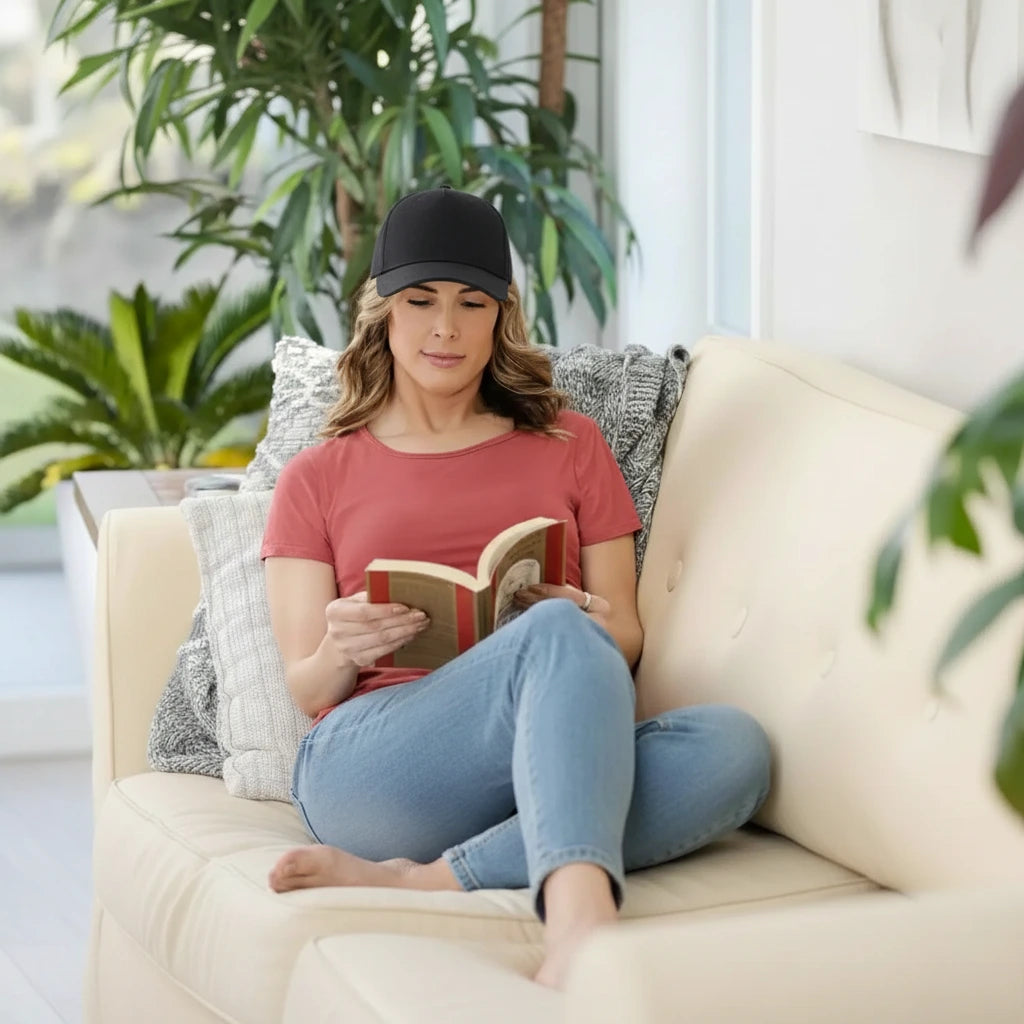 The cap is USB-powered and compatible with wall adapters and power banks. Simply plug it in and wear it—the device automatically starts the treatment and turns off after the preset 30-minute session. No buttons or apps are required.